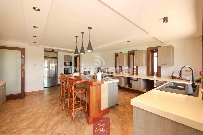 This exquisite townhouse in Lavington consists of 4 and 5-bedroom villas, situated on a prime plot of approximately 0.8 acres. Each villa features en-suite bedrooms, with the master and other spacious bedrooms located on the upper levels. The top floor is designed for entertainment, with a large terrace offering views of the lush garden and the swimming pool.