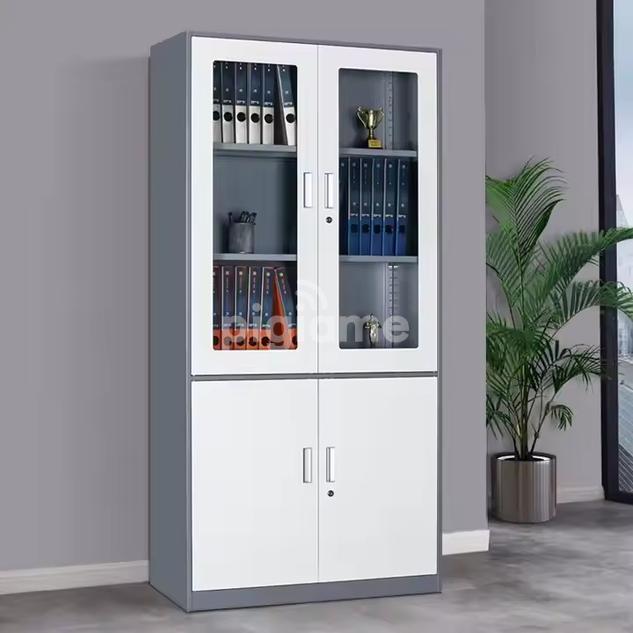 Elevate your office aesthetics and functionality with our premium Half Glass and Steel Door Office Cabinet. This modern storage solution perfectly blends secure steel construction with elegant glass panels, offering both privacy for sensitive documents in the lower steel section and convenient visibility for frequently accessed items or decorative displays in the upper glass section.