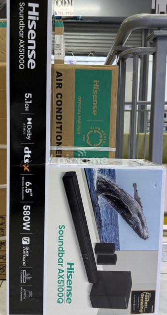 Elevate your home entertainment with this powerful Hisense 5.1 soundbar system that delivers immersive surround sound and crystal-clear audio. Perfect for movie nights, gaming, or music, it brings a theater-like experience right to your living room.